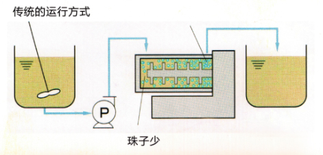 ![]() 循環(huán)操作只需一個(gè)或兩個(gè)攪拌桶實(shí)現(xiàn)循環(huán)砂磨,而且攪拌桶內(nèi)粗顆粒會(huì)快速沉淀而優(yōu)科學(xué)入砂磨腔砂磨。 |